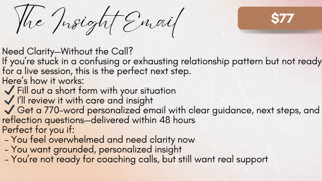 (If you’ve been stuck in relationship indecision, my Should I Stay or Go? workbook was made for you. It’s an 18-page guided process to help you stop circling, understand what’s keeping you stuck, and move toward a confident and aligned decision. 👉 Download now)